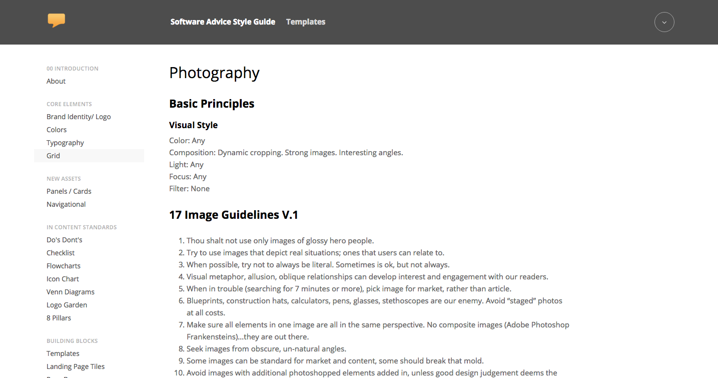 An extensive set of rules were created for how to handle image selection. Photography that was not staged or felt like 'stock photography' was favored. For a more complete list of these rules please see Brand Guidelines at the end of this page.