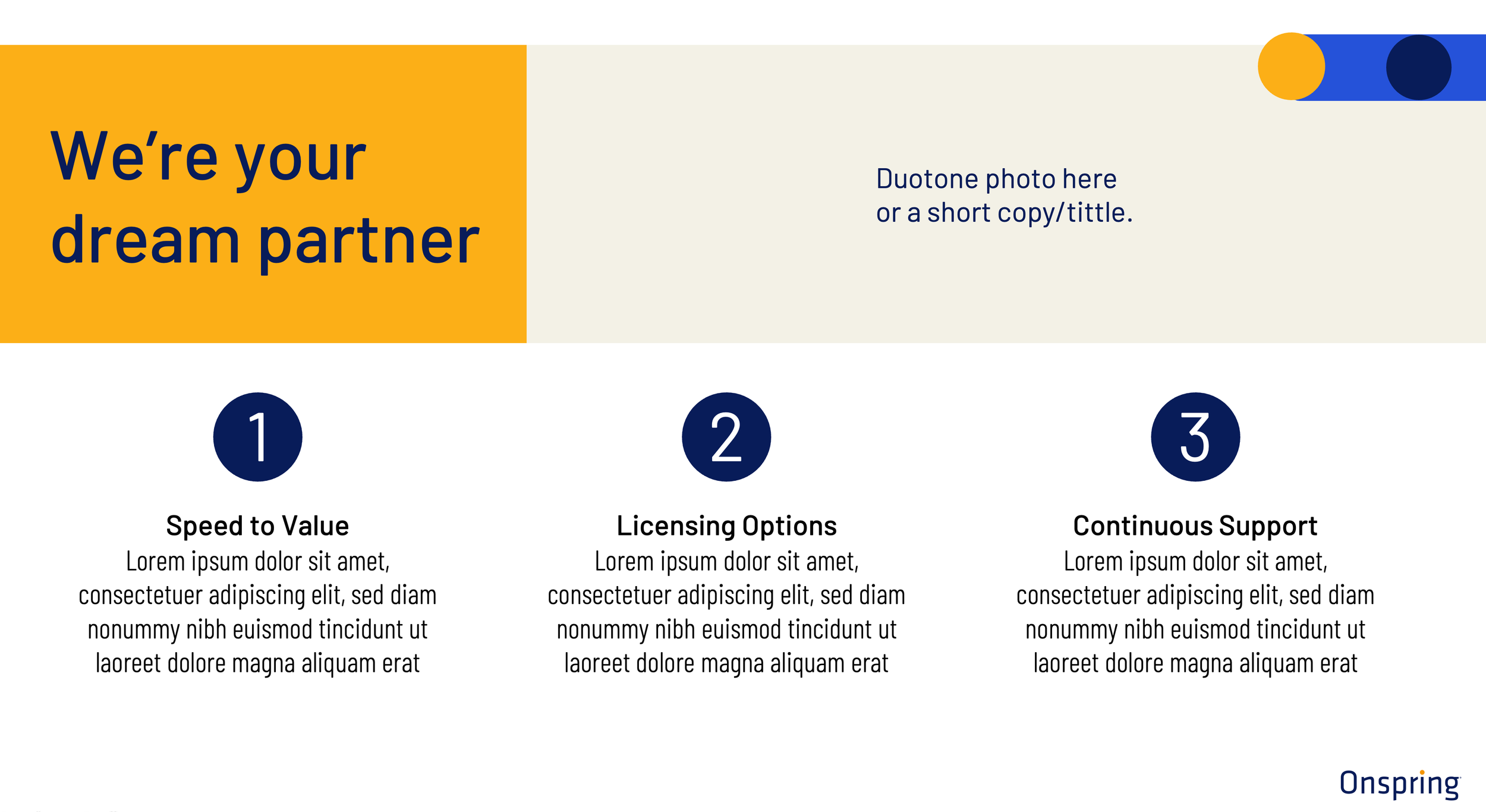 We designed a comprehensive evergreen presentation system that balances creative expression with technical ease. From executive pitch decks to scalable social kits, these assets provide Onspring’s Sales Team with the foundation to move faster, present bolder, and maintain a unified brand voice worldwide.